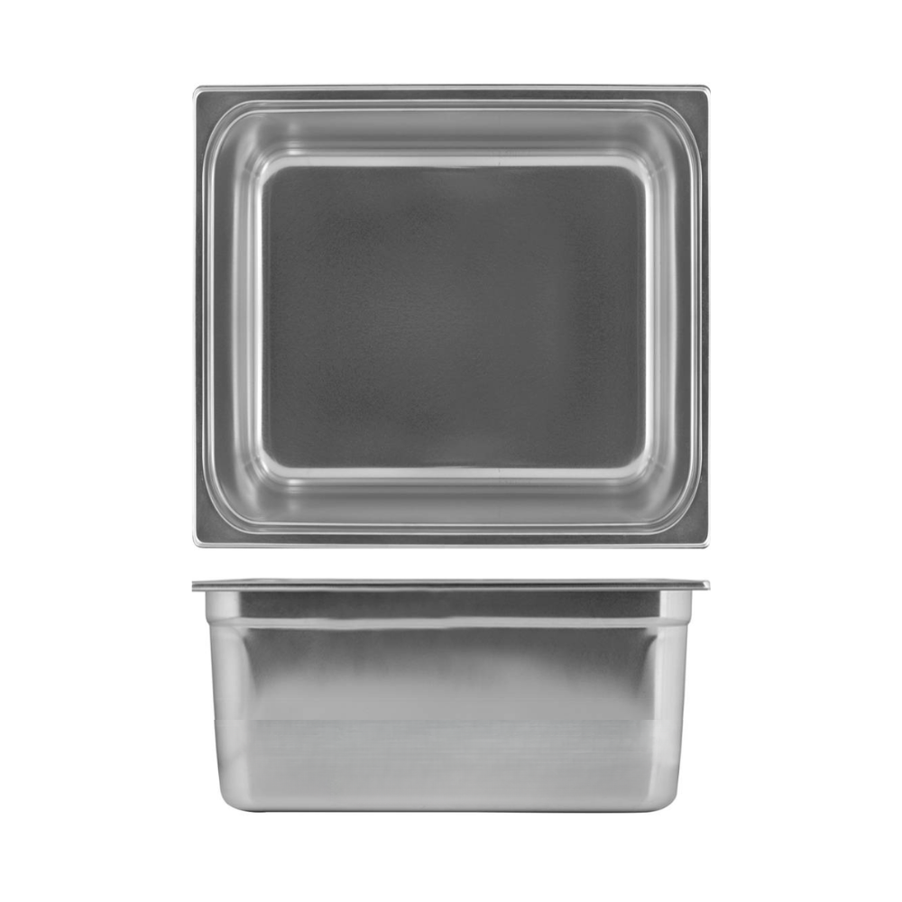 Il formato GN 2/3, che corrisponde a una misura di 325x355 mm, è progettato per adattarsi perfettamente ai sistemi di stoccaggio e cottura standardizzati utilizzati nelle cucine professionali. Questa specifica dimensione è particolarmente adatta per mantenere al caldo o al freddo pietanze di medie dimensioni, offrendo la possibilità di organizzare al meglio il banco di lavoro o il buffet.
