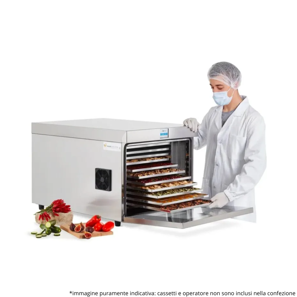 Ideal zum Trocknen von Obst, Gemüse, aromatischen Kräutern, Pilzen, Fleisch und landwirtschaftlichen Produkten , gewährleistet Biosec Pro auch bei großen Mengen gleichbleibende Ergebnisse und ist daher perfekt für den professionellen Einsatz, landwirtschaftliche Betriebe, Handwerksbetriebe und fortgeschrittene Heimwerker geeignet.
