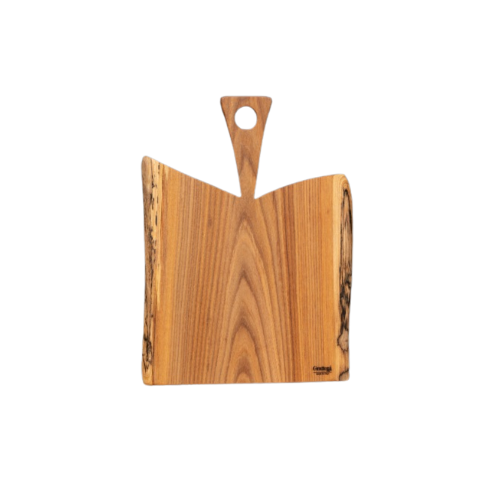 Kleines, handgefertigtes Schneidebrett aus Ulmenholz. Modell Bree S von Grattoni 1892, 100 % Made in Italy. Kompakt, elegant und perfekt zum stilvollen Servieren.