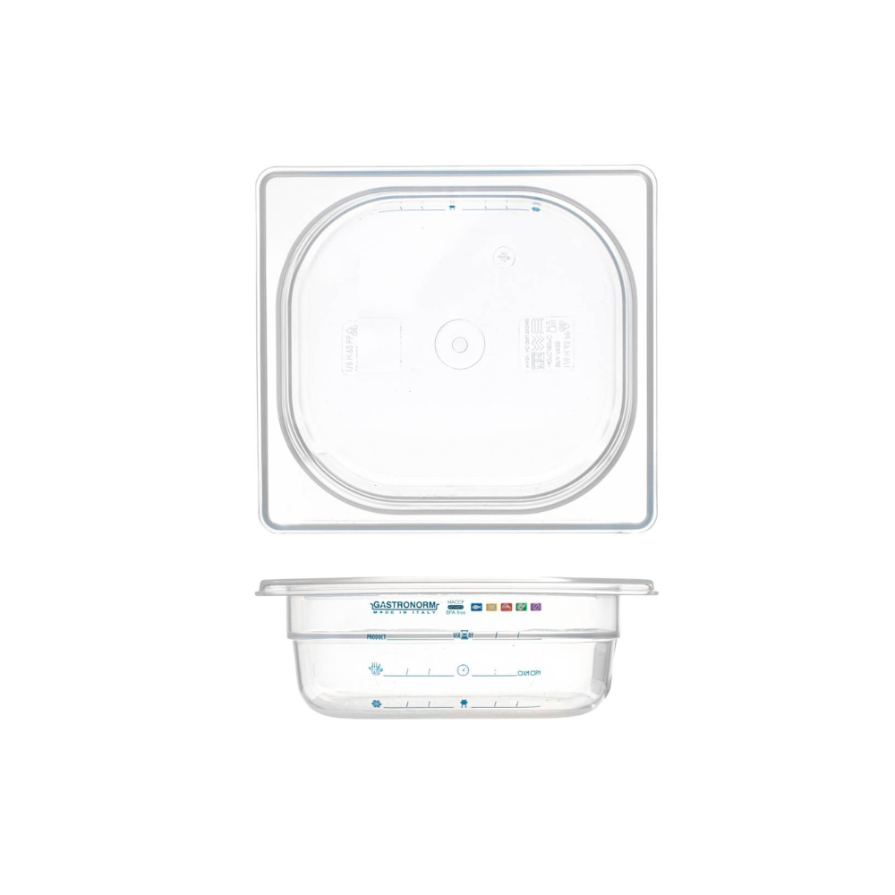 Die GN 1/6-Behälter eignen sich perfekt für Restaurants und Profiküchen, die eine effiziente Organisation und optimale Raumnutzung erfordern und dank der Kompatibilität mit dem Gastronorm-System und den HACCP-Vorschriften eine hohe Qualität und Lebensmittelsicherheit gewährleisten. Eine kompakte Lösung, mit der Sie jede Zubereitung präzise verwalten können.