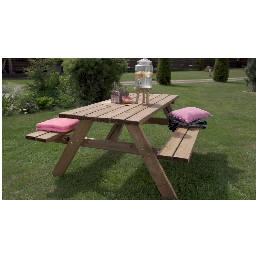 Entdecken Sie die Schönheit und Widerstandsfähigkeit von Picknicktischen aus imprägniertem Holz, die sich perfekt für unvergessliche Momente im Freien eignen. Das imprägnierte Holz ist witterungsbeständig behandelt und sorgt so für Langlebigkeit und Robustheit im Laufe der Zeit.