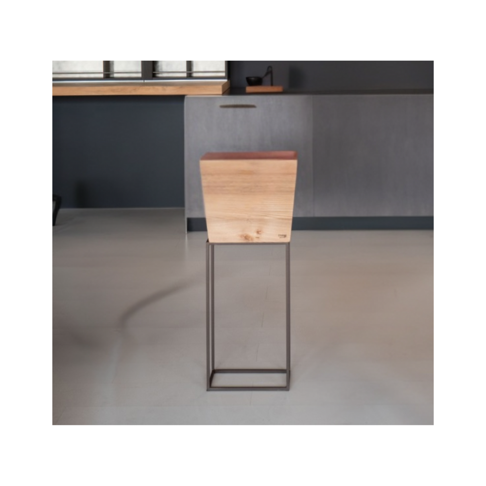 Measurements: shelf: 36x23 h31 cm - base: h84 cmThe "Se Glot" elm wood champagne bucket with metal structure by Grattoni 1892 is much more than a simple bottle container. It is a true design object, designed for those seeking elegance, functionality and artisanal quality in a single element. The natural elm wood, treated to maintain its authentic grain, gives warmth and personality to the environment, while the metal base guarantees stability and a contemporary touch.