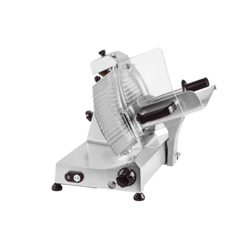 La FAC F 250 TC‑V est une trancheuse verticale spécialement conçue pour trancher rapidement et en toute sécurité les viandes fraîches, compactes ou dures. Sa lame en acier inoxydable de 250 mm et son plateau monté sur roulements à billes garantissent des coupes nettes et parfaites, même avec de grandes quantités de produits. Son moteur monophasé de 0,35 CV assure une puissance constante sans surchauffe, tandis que ses boutons métalliques et son châssis en aluminium anodisé facilitent le nettoyage et l'entretien. Idéale pour les boucheries, les charcuteries et les cuisines professionnelles exigeant robustesse, précision et hygiène.