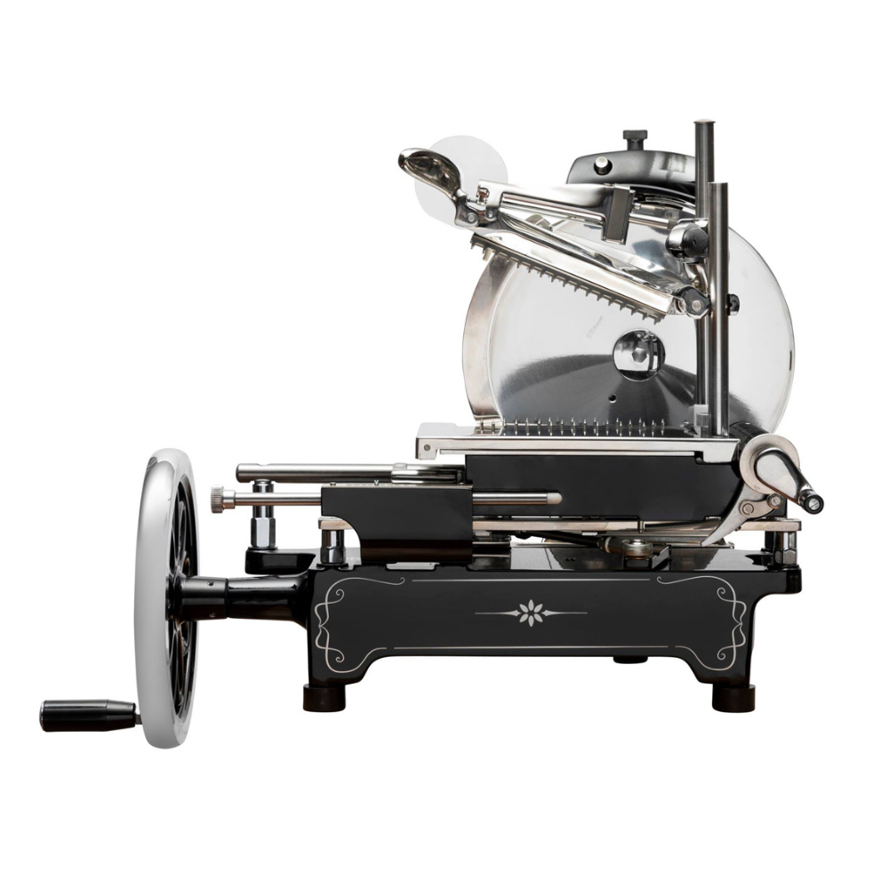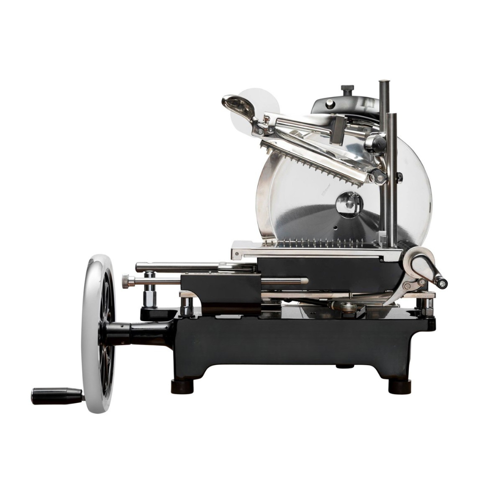 Son design sobre et technique n'est pas seulement un choix esthétique : c'est la conséquence naturelle d'une conception axée sur la fonctionnalité. Le volant manuel permet une coupe fluide et contrôlée, tandis que la lame de 300 mm garantit des résultats impeccables sur tous les types de charcuterie, des plus tendres aux plus affinées. Tous les composants sont conçus pour durer et être faciles à nettoyer, conformément aux normes d'hygiène.
